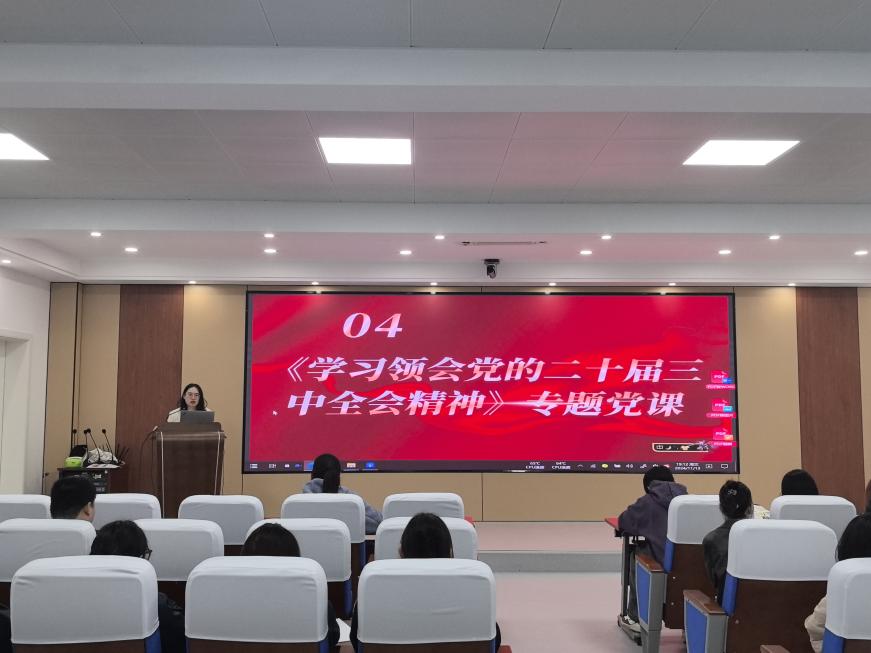最后,王菲菲老师就《学习领会党的二十届三中全会精神》专题党课开展学习,她强调各党支部要以会议精神为引领,围绕支部工作高质量发展为目标,以实际行动推动党建工作内涵式发展,将党的二十届三中全会精神贯彻到日常的学习、科研和生活中,充分领略其精神内涵与时代价值,深刻理解进一步全面深化改革的重大意义。