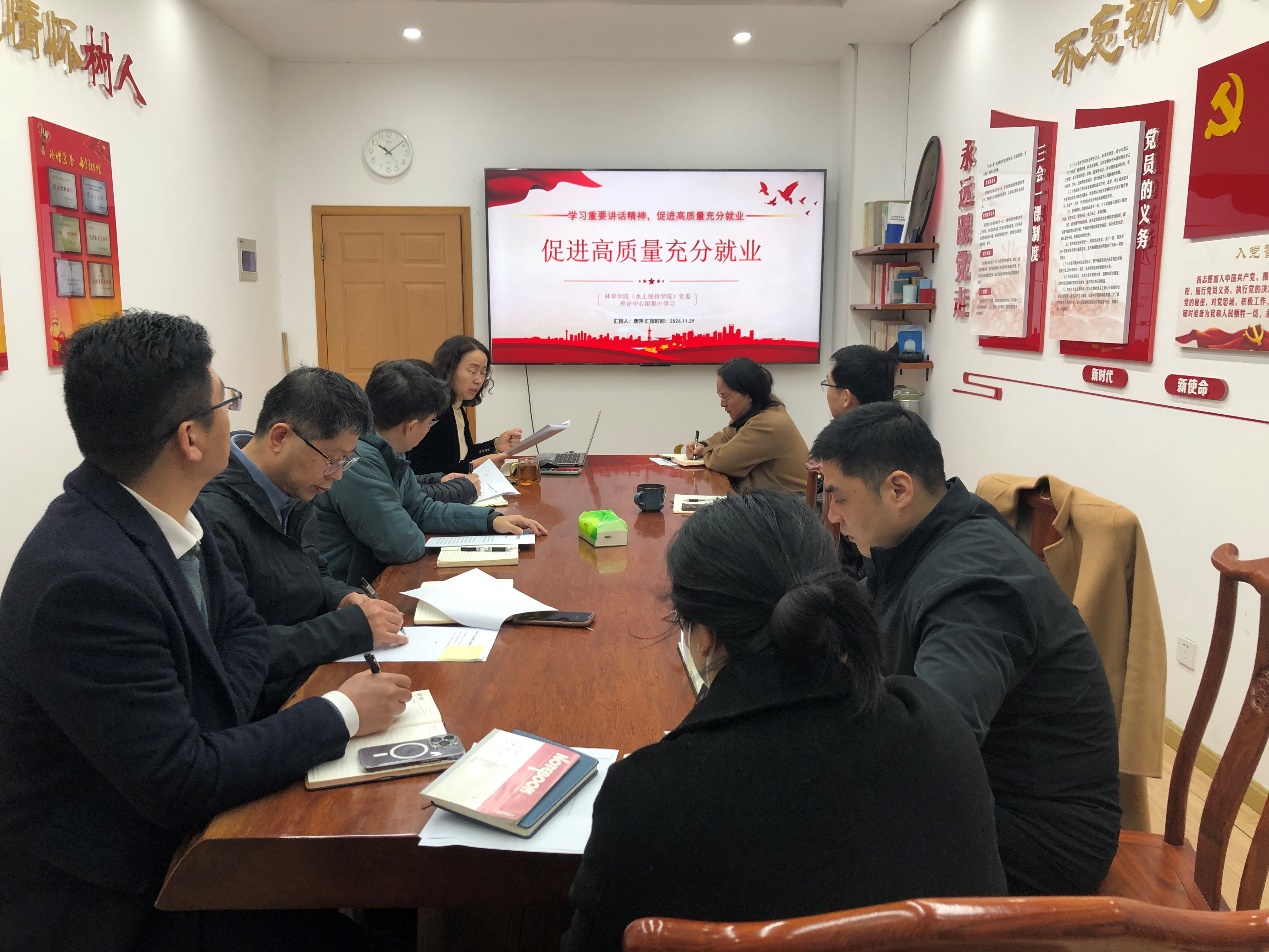 11月29日上午,林草皇冠新2 (水土保持皇冠新2 )党委理论学习中心组在林学楼1324党建工作室召开理论学习会,专题学习习近平总书记在第21期《求是》杂志发表的重要文章《促进高质量充分就业》。本次集中学习由学院党委书记唐萍领学,院长姜姜、皇冠新2 党委副书记、副院长吴淳同志、副院长黄麟同志重点发言,院党委理论学习中心组全体成员参加。