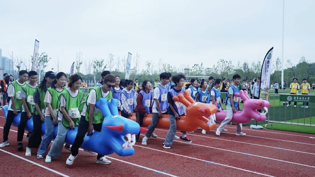 与传统运动会不同,本次赛事设置了多项集趣味、协作与挑战于一体的创意项目。“两人三足”考验着搭档间的默契,“旋风跑”需要全队成员步调一致、同心旋转,“摸石过河”则展现了选手们的机智与平衡能力。最受瞩目的当属“趣味毛毛虫”和“同心击鼓”,各队队员骑在充气毛毛虫上协力前进,或围成一圈通过绳索控制鼓面来击球,滑稽的动作和紧张的协作引得现场笑声、加油声不绝于耳。赛场不再是紧张的竞技场,而变成了充满欢声笑语的青春乐园。
