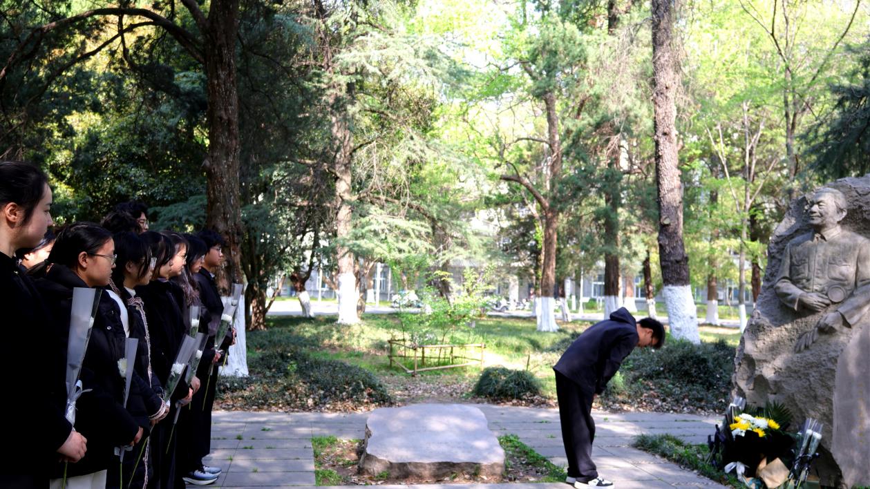 春日晨光中,郑万钧院士雕像巍然矗立。"碧水青山"传习社成员以饱含敬意的语调,回顾了郑万钧院士毕生献身林业科研、推动水杉发现与研究的卓越贡献。师生们垂首肃立,在郑万钧院士雕塑前进行了默哀。随后,手持鲜花,依次献于雕像前,一束束素菊,包含着后人对先辈的深深敬意与思念。