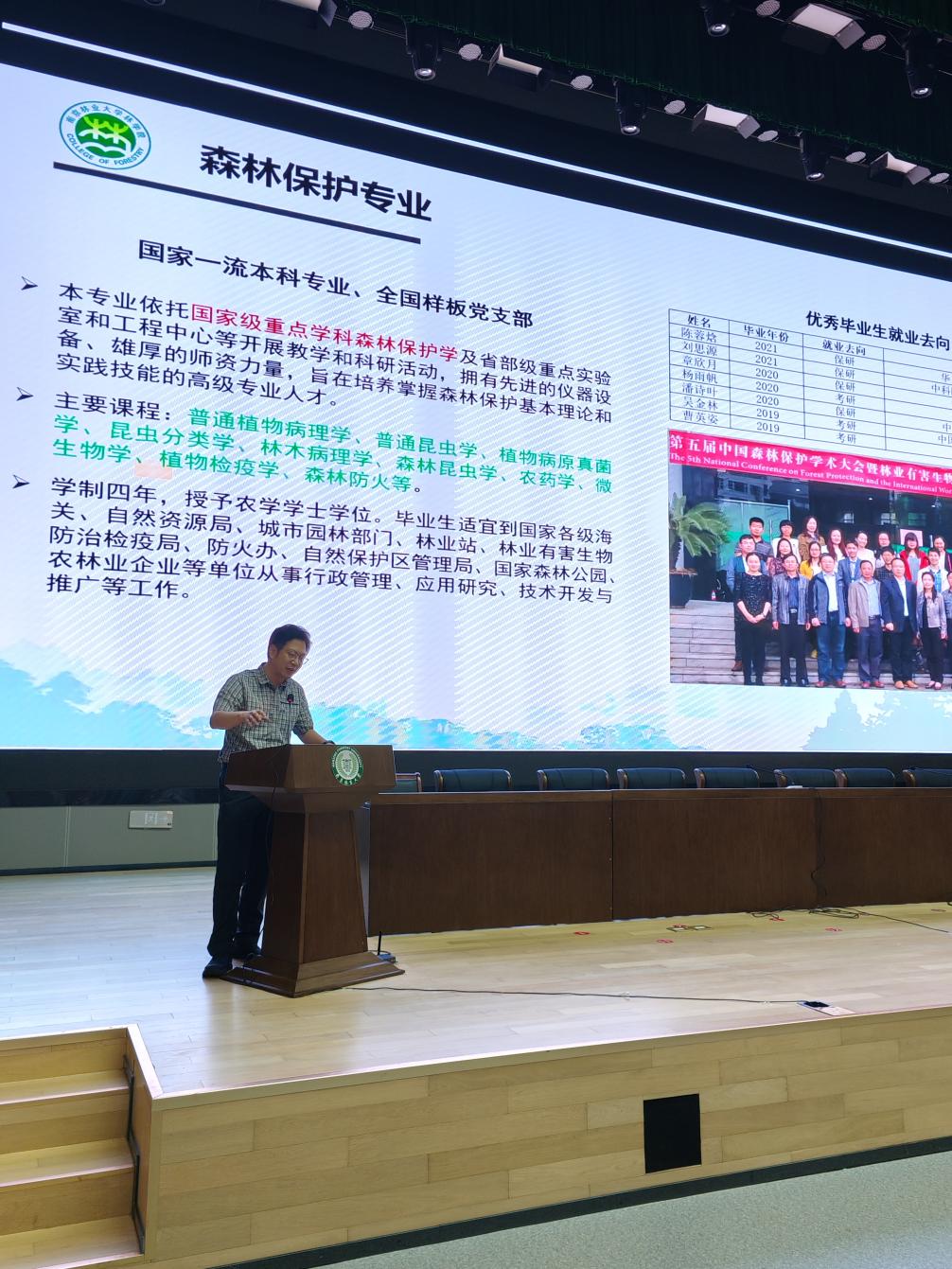 各专业派出代表老师分别对林学、水土保持与荒漠化防治、森林保护等专业进行了详细介绍,包括专业背景、课程设置、就业前景以及未来发展方向,帮助新生对所学专业有更清晰的认识,为今后的学习规划奠定基础。