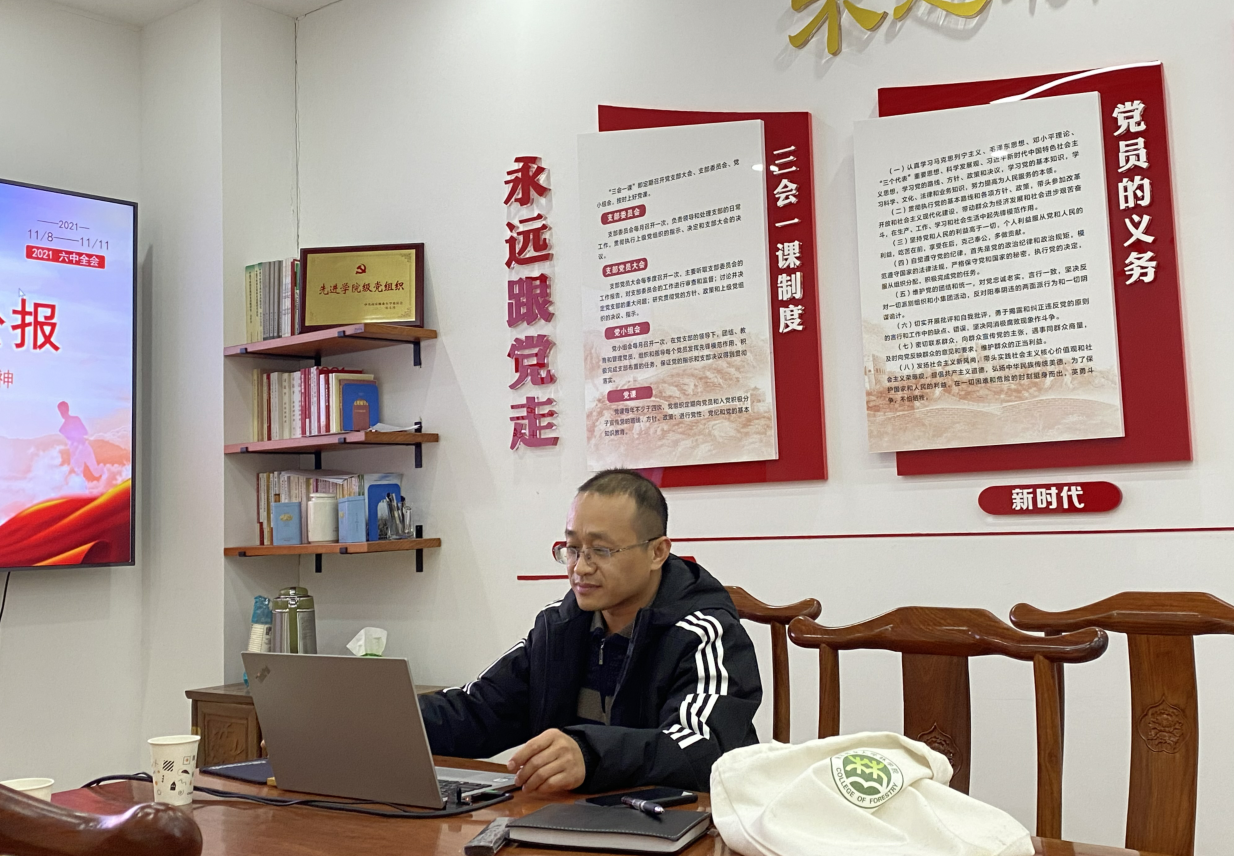 为深入学习贯彻十九届六中全会精神,引导和激励更多党员同志不忘初心、为谱写和实现中华民族伟大的复兴梦不断奋斗,皇冠新2 于11月26日下午组织所有教工党支部书记集中学习十九届六中全会精神。本次集中学习由院党委副书记王华光主持。