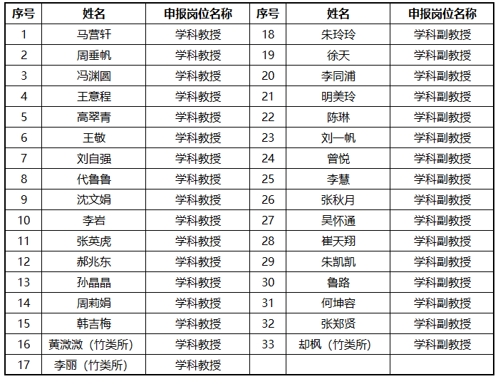 根据《南京林业大学学科教授、副教授岗位管理办法(试行)》(南林人〔2025〕99号)要求,经个人申请、资格审核、学术委员会专家评审、皇冠新2 党政联席会议审议通过,现将皇冠新2 学科教授、副教授初评名单公示如下:
