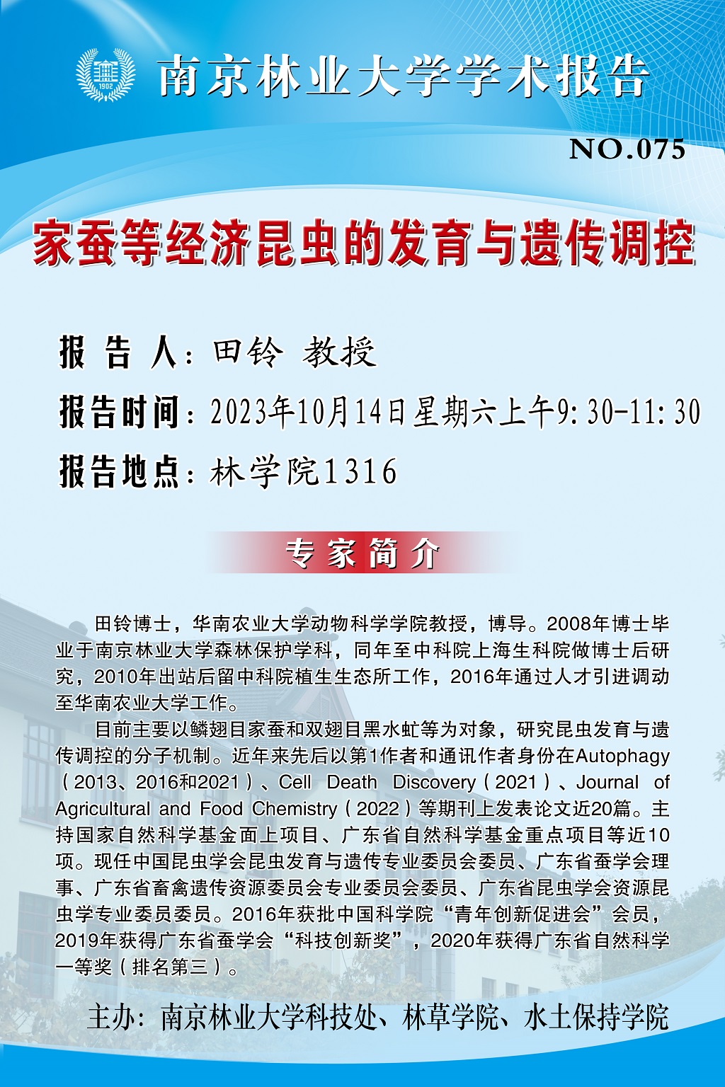 【校友学术报告】家蚕等经济昆虫的发育与遗传调控