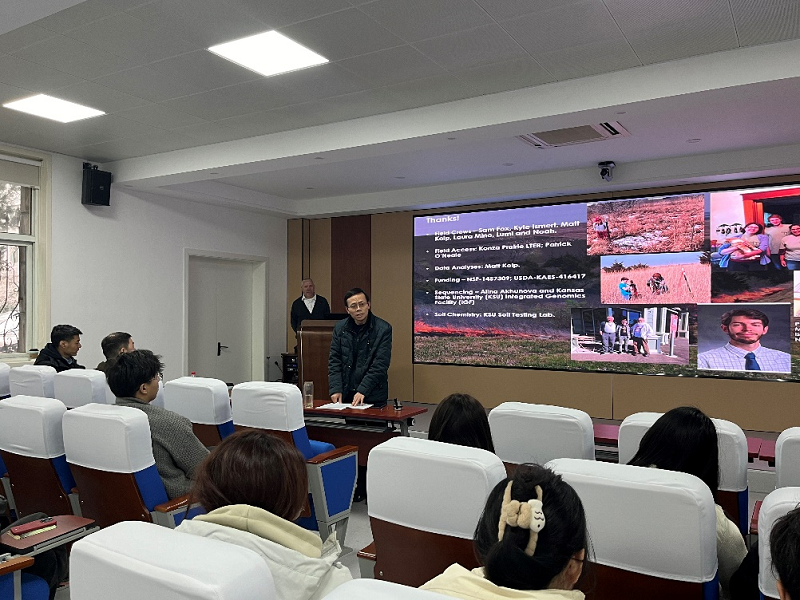 上半场讲座中,由Ari Jumpponen教授作了题为"Soil microbiome responses to changing fire regimes and fire severities"的专题报告。该报告结合了美国佛罗里达松林、堪萨斯草原、俄勒冈混交林等多种生态系统的实测数据,系统揭示了火灾频率以及火灾强度对土壤微生物组的影响。其核心发现包括低强度火灾促进氮磷矿化,提升细菌多样性,而高强度火灾导致微生物多样性断崖式下降;微生物菌群对森林火灾的响应呈现特异性,如佛罗里达松林中真菌多样性随火势增强显著降低,而草原系统则表现相反趋势;以及高火情后不同生态系统的调控作用出现显著差异等。该报告不仅深化了师生对火灾生态效应的多维度认知,也使皇冠新2 在森林微生物组研究领域达成了与国际前沿的深度对接。