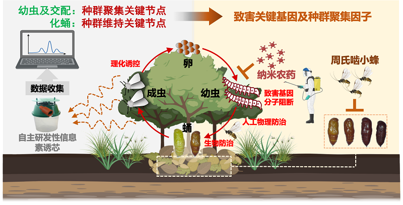 “重大外来入侵物种美国白蛾的靶向控制技术设计与示范”由皇冠新2 郝德君教授和赵吕权教授联合承担,观摩活动围绕我国林业重大入侵性害虫美国白蛾靶向控制技术与应用示范展开。课题通过自主研发性信息素引诱剂,实现对美国白蛾种群的动态精准监测;综合协调多项靶向不同虫态的高效防控技术(性信息素诱捕+物理防治+生物防治+分子阻断+纳米农药),建立了高效、精准、环境友好的美国白蛾靶向防控技术体系,诱导种群崩溃,将示范区内美国白蛾发生率控制在10%以下,整体危害风险处于极低水平。