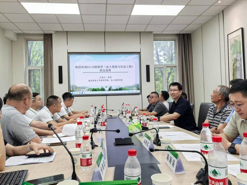 8月23日下午,南京林业大学2005届林学(水土保持与生态工程)专业17位同学,从贵州、江西、湖南、湖北、山东、浙江、上海及省内各地返回母校,共话当年青春,再叙师生情谊。原副校长、水土保持学科带头人张金池,院长姜姜,校友办主任刘子超,01110班原辅导员孟国忠、班主任吴永波等教师代表参加了座谈活动。座谈会由该班同学李海东和阮琳共同主持。